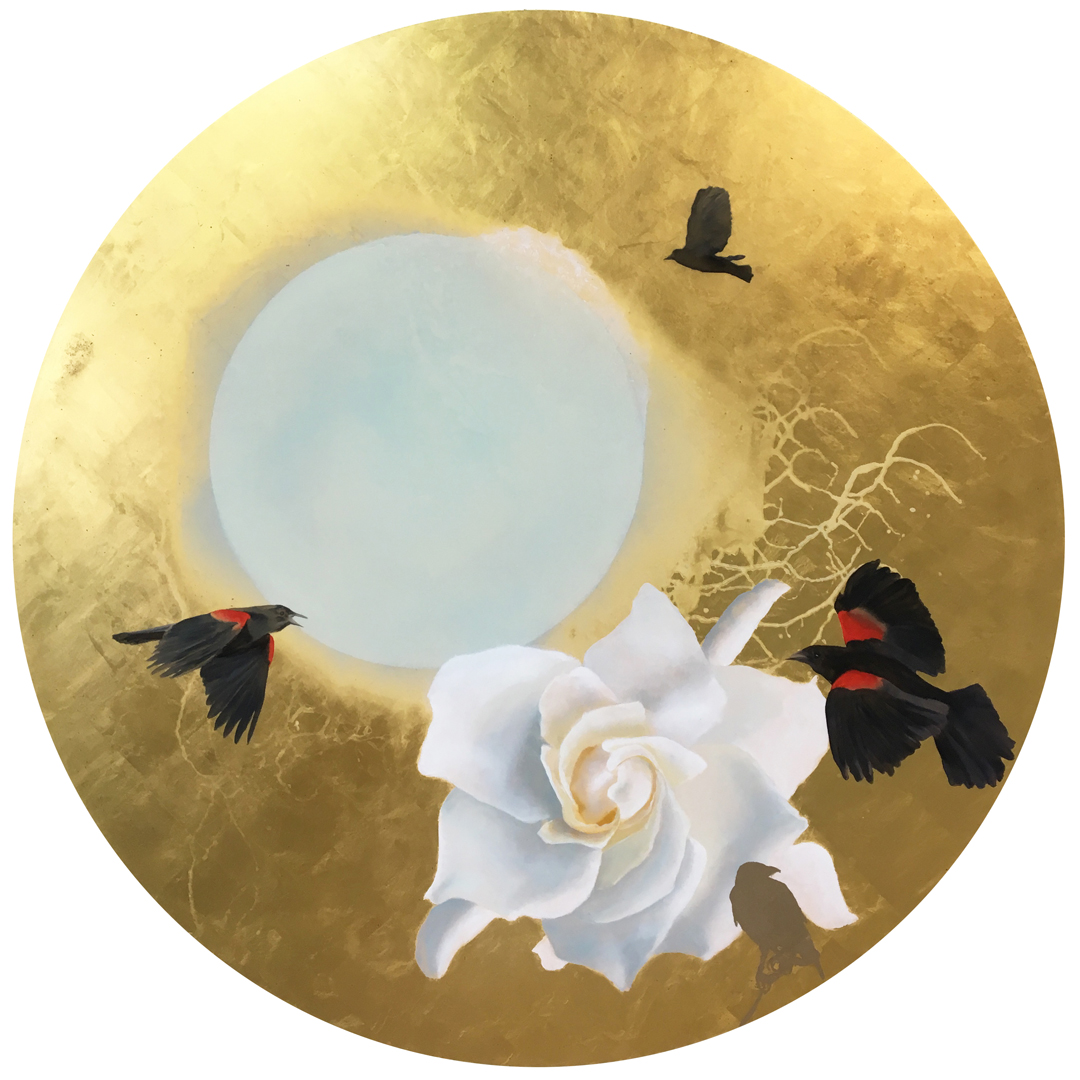 Annunciation II, oil with 23k & 21k Moon gold on panel, $7,000.